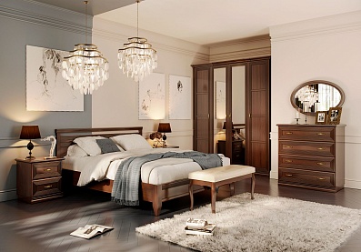 Шкаф Кантри с полками КА-011.00 (1 комплект), 2 выдвижными ящиками и штангой для одежды с зеркалом Валенсия