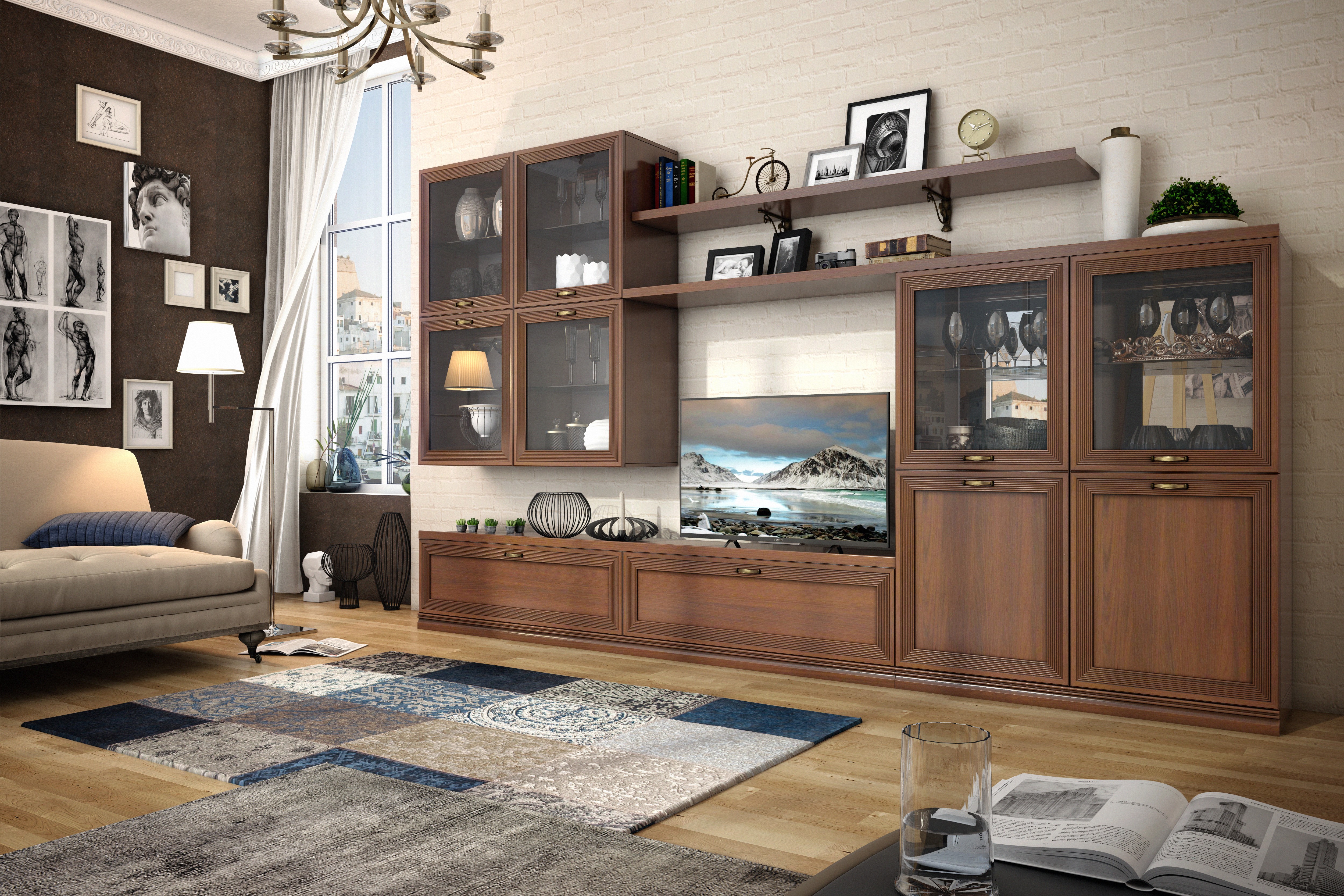 - Гостиная Адажио понравится семейным людям, ценителям классики и традиций. Она просто создана для уютных вечеров с близкими людьми, размеренному чтению любимых книг и просто приятных кинопросмотров за кружкой чая;