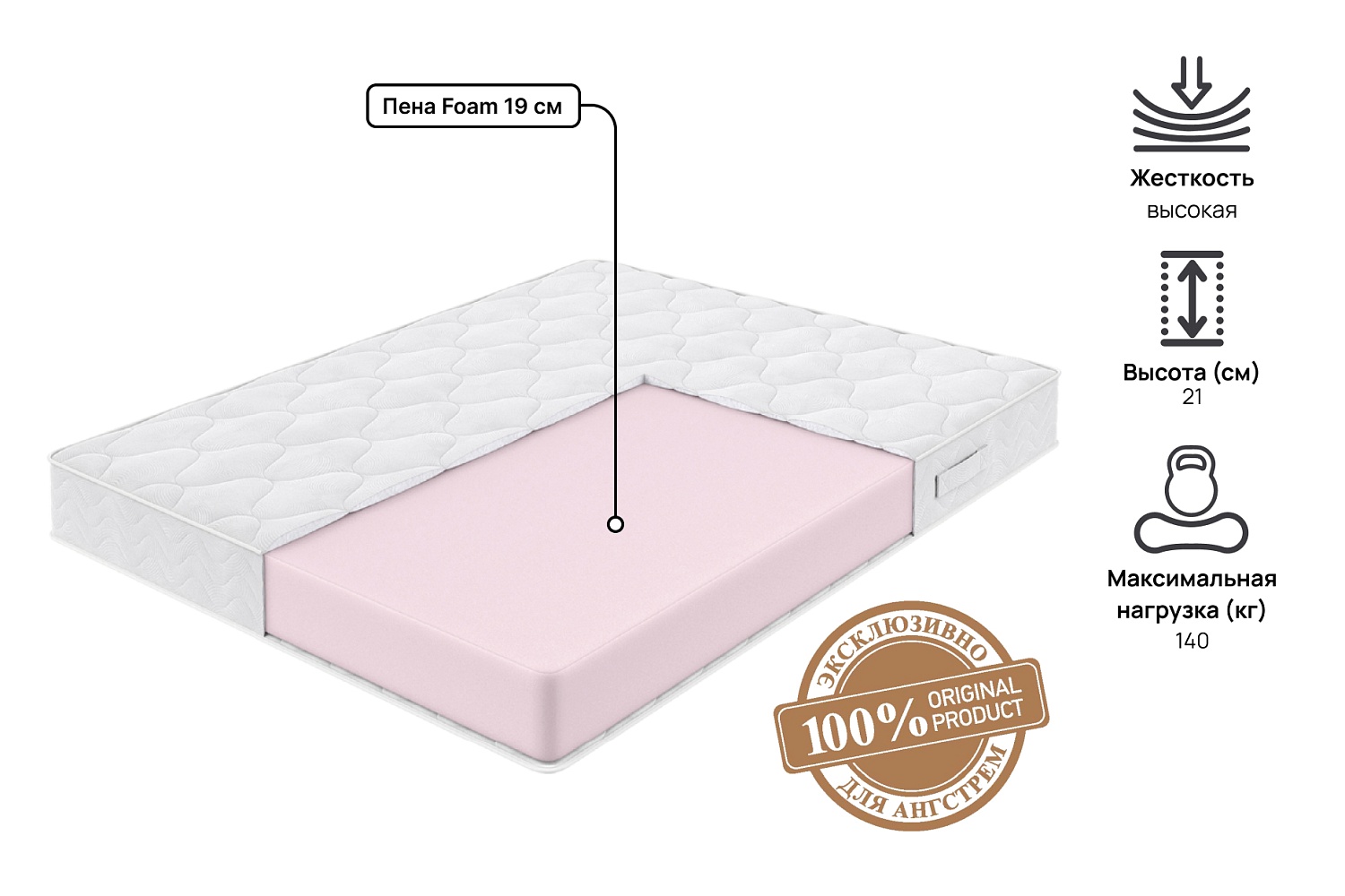 Матрас Silver двусторонний, изготовлен на основе монолитного блока из гипоаллергенного, влагоустойчивого и долговечного материала Foam. Благодаря высокой степени упругости обеспечивает идеальный анатомический эффект. Чехол изготавливается из дышащего трикотажа, простеганного на синтепоне. Для удобства транспортировки матрас скручен в рулон и помещен в вакуумную упаковку. После распаковки полностью восстанавливает свою форму в течение суток.