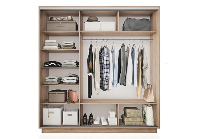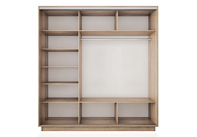 Универсальная перегородка внутри шкафа позволяет менять местами секции: можно расположить секцию со штангой или с полками с любой удобной стороны – справа или слева.